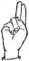 На ћирилици написано МОМИРКА РУДЈА састоји се из 12 слова [?]. Исписано ћириличном једноручном азбуком за глувонеме: